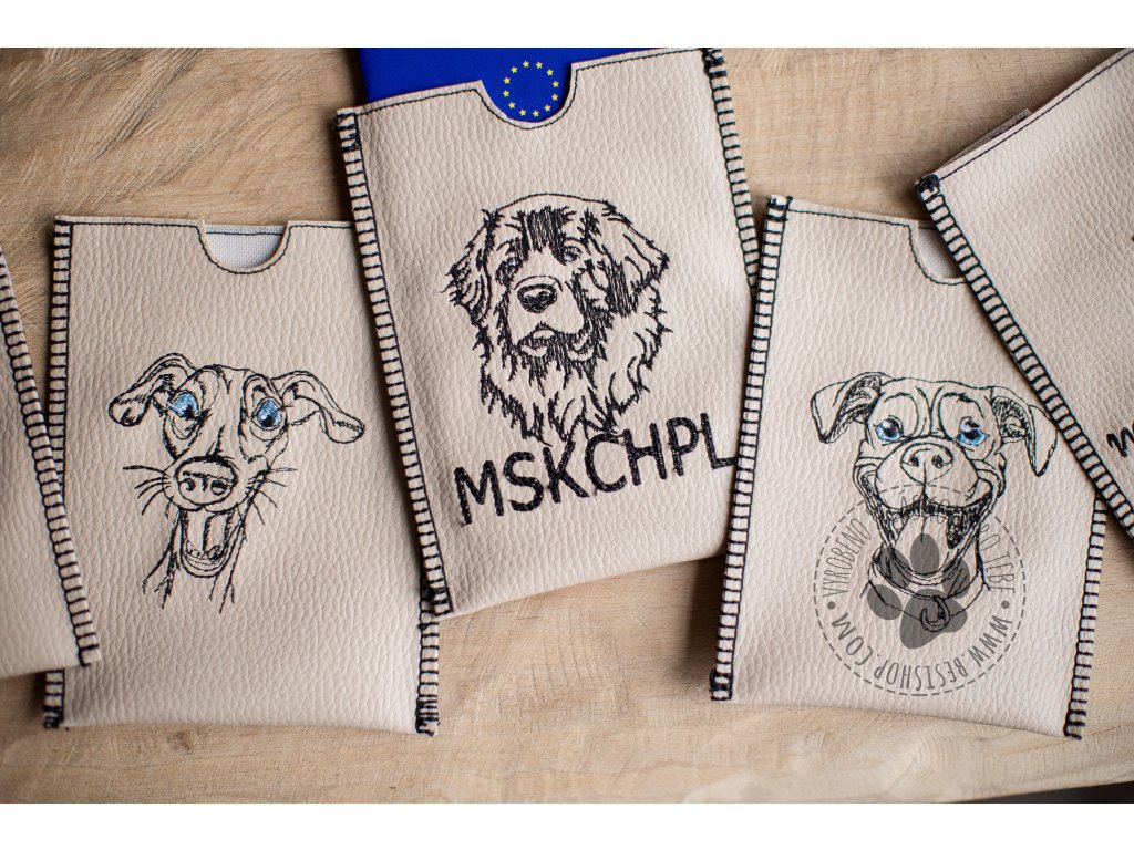 - Vyšívaný obal na očkovací průkaz nebo cestovní pas s vyšívaným jménem na přání. Lze vyšít i pes na přání.